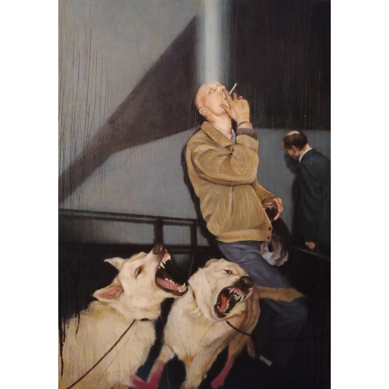 ANDREAS LEIKAUF ist kein Newcomer mehr und wir sind besonders stolz, ihn bei uns ausstellen zu dürfen. Er verbindet Alltagssituationen meist monochrom oder schwarz-weiss gemalt mit kleinen Textbotschaften, die eine zweite Ebene ins Bild einfügen.